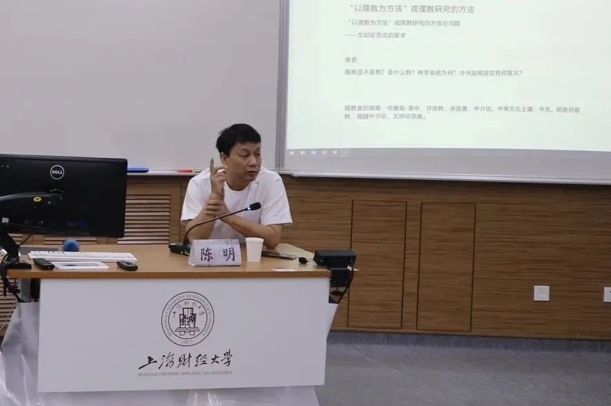 在熱烈的氛圍下,中國社會科學院世界宗教研究所張宏斌研究員主持了本次研討會的主旨發言環節。湘潭大學陳明教授從方法意義上指出儒教接續的可能。在以儒教為方法前提下,陳明教授概述了可能出現的突出問題,并進一步分析了文明視域下的相應范式要求。