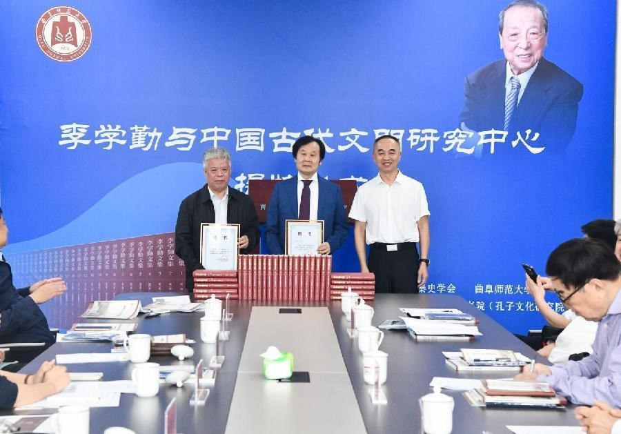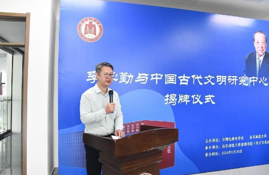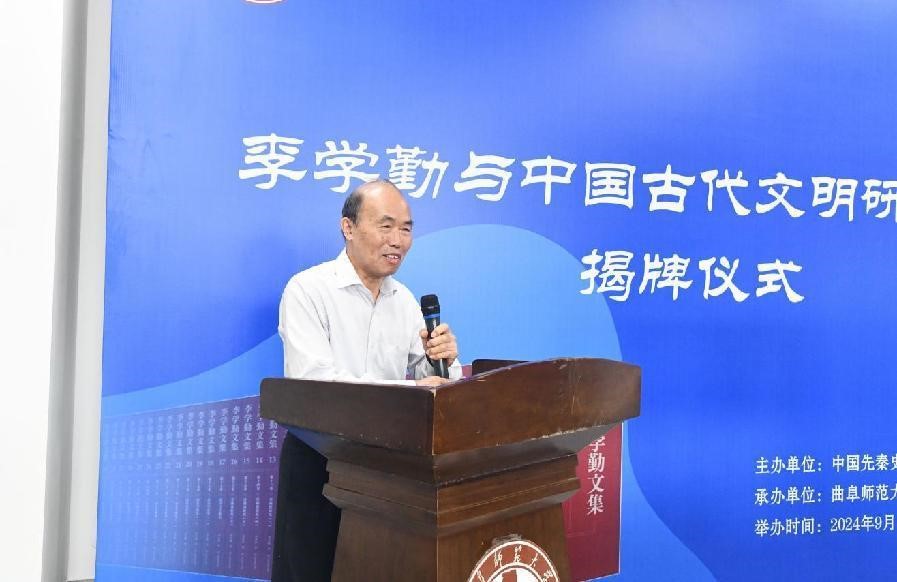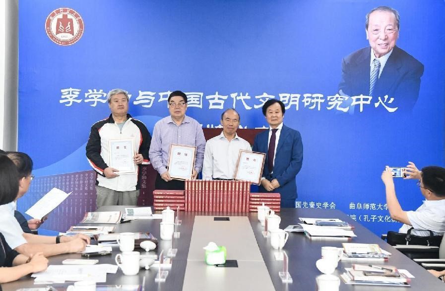9月26日,由中國先秦史學會、曲阜師范大學主辦,曲阜師范大學洙泗書院(孔子文化研究院)承辦的“李學勤與中國古代文明研究中心”揭牌儀式在曲阜師范大學舉行。來自中國先秦史學會、中國社會科學院、中國科學院、清華大學、浙江大學、山東大學、上海交通大學、西北大學、深圳大學、大連大學、河南社科院、山東省博物館、北京語言大學、北京第二外國語學院、山東師范大學、尼山世界儒學中心、孔子研究院、曲阜政協及曲阜師范大學等科研機構及單位的40多位專家學者齊聚一堂,共同緬懷李學勤先生人格風范,回憶與李先生的學術交往,總結李先生的學術貢獻,為李學勤與中國古代文明研究中心的未來發展獻計獻策。